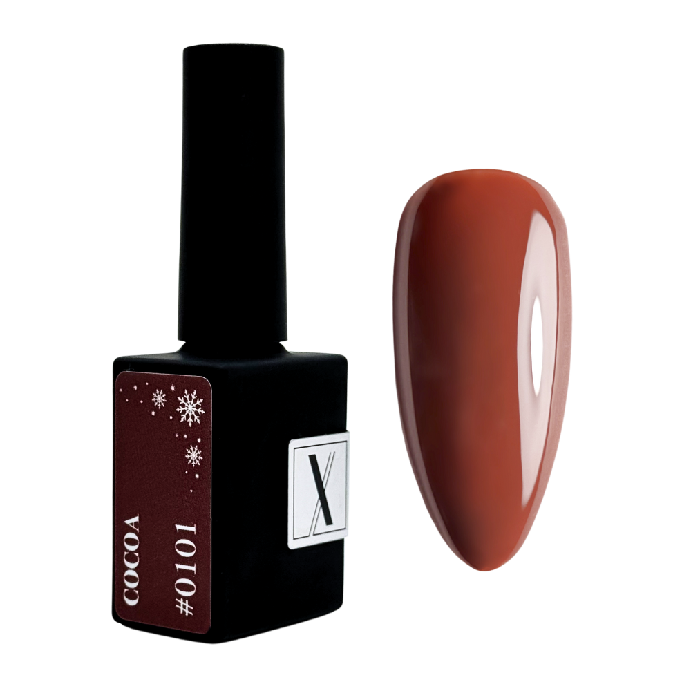 Cocoa #0101 – ciepły brązowy lakier hybrydowy z kolekcji Hello, December. Klasyczny, elegancki i uniwersalny odcień całoroczny.