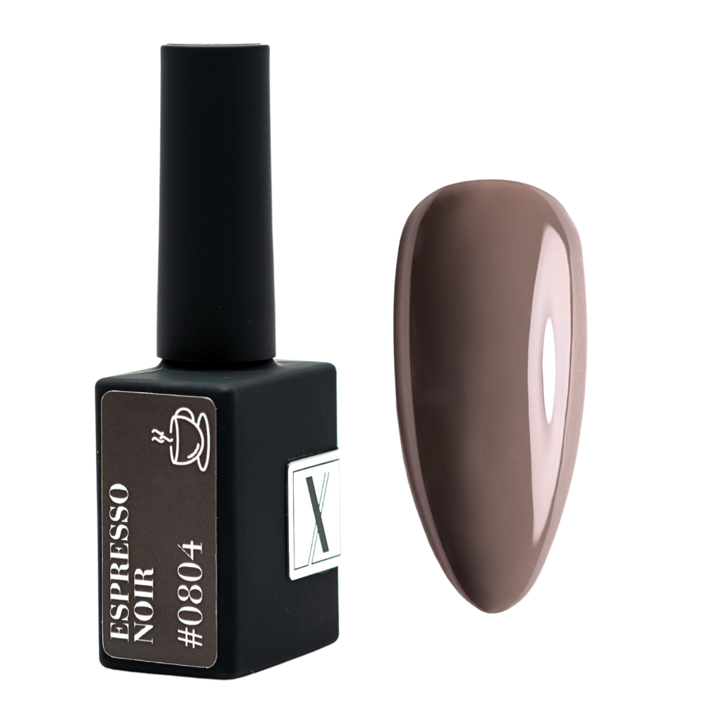Lakier hybrydowy Espresso Noir #0804 z kolekcji Coffee Break to intensywny, głęboki odcień inspirowany kolorem mocnego espresso. Barwa łączy bardzo ciemne brązowe tony z niemal czarną głębią, tworząc elegancki i wyrazisty kolor idealny do stylowych, klasycznych manicure. Odcień Espresso Noir stanowi doskonałą alternatywę dla czerni, nadając stylizacji paznokci bardziej miękki, ale wciąż bardzo elegancki charakter.