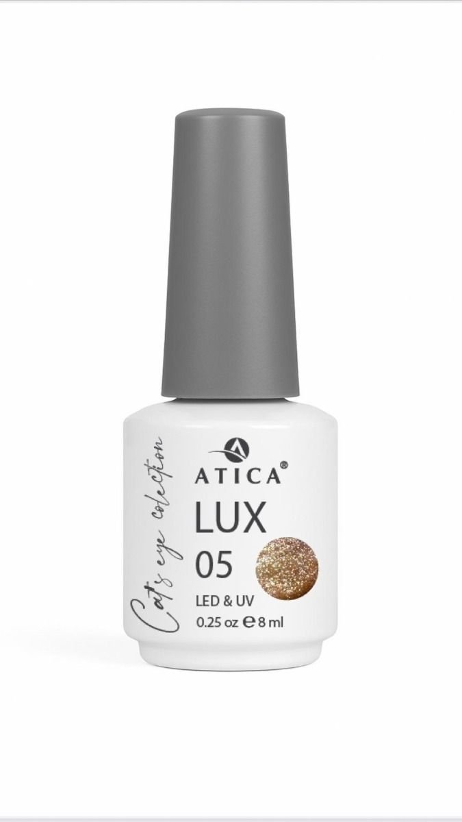 LC05 – lakier hybrydowy Atica Cat’s Eye Lux Collection 8 ml. Głęboki czekoladowo-złoty odcień z magnetycznym efektem kociego oka i satynowym połyskiem.