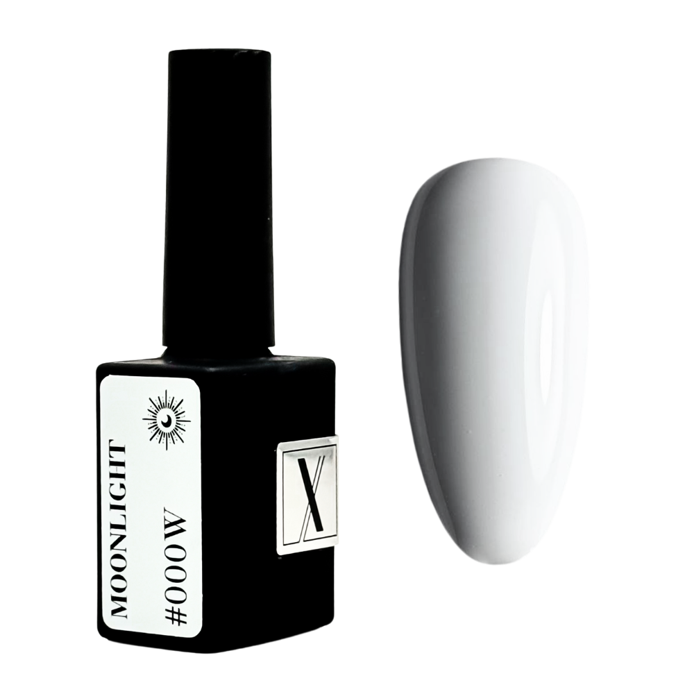 Lakier hybrydowy Moonlight #000W (10 ml) – klasyczna, chłodna biel o idealnej czystości i elegancji. Doskonały wybór do french manicure, minimalistycznych zdobień i nowoczesnych stylizacji.