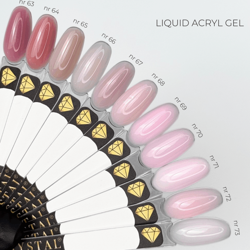 Liquid Acryl Gel №65 Crystal Professional to profesjonalny płynny żel akrylowy o konsystencji zbliżonej do gęstej bazy rubber, dzięki czemu jest wyjątkowo łatwy w aplikacji, szybko się poziomuje i pozwala na precyzyjną pracę bez spływania. Produkt zapewnia wysoką trwałość stylizacji oraz umożliwia budowanie naturalnej architektury paznokcia bez ryzyka deformacji.