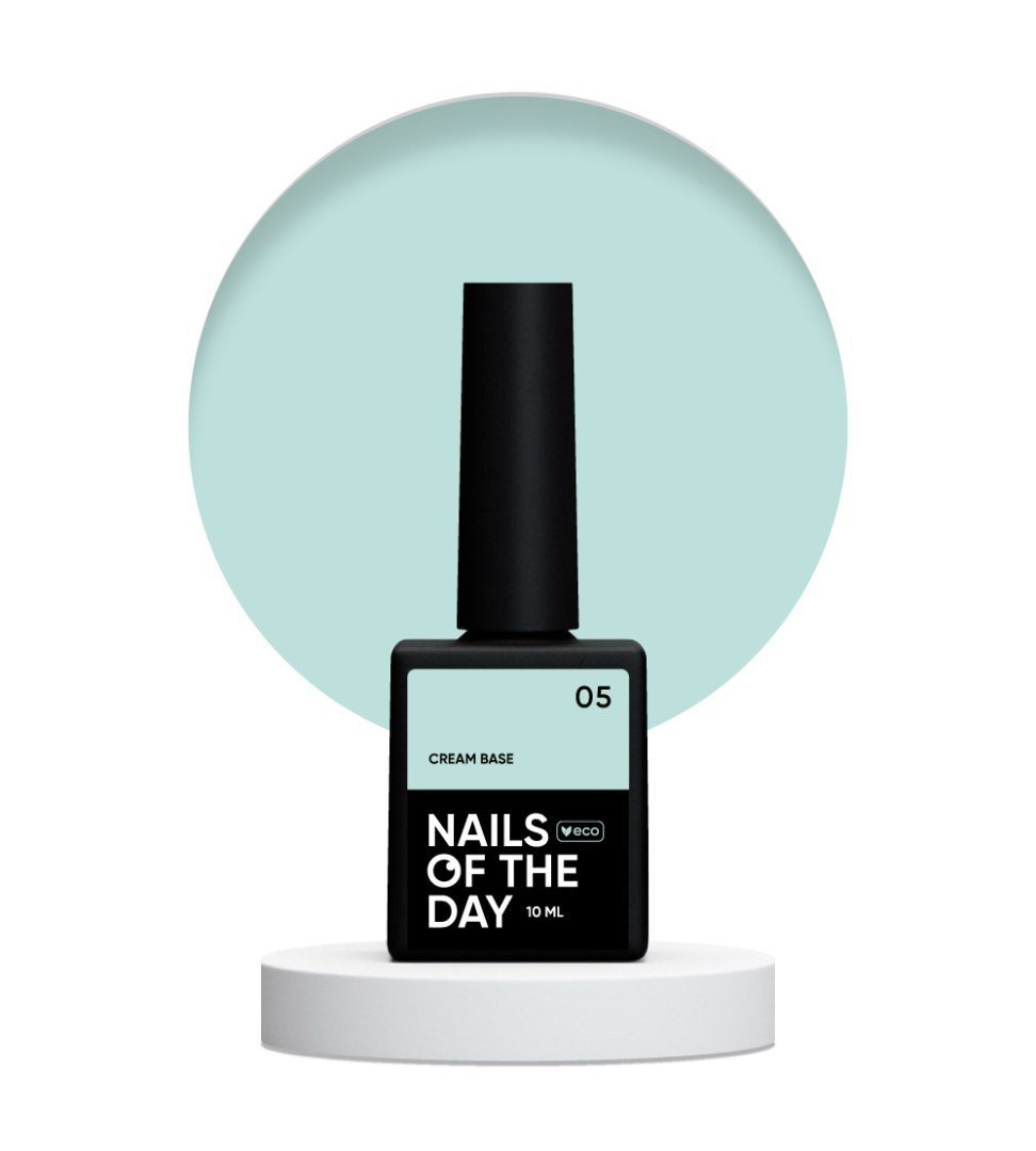 NAILSOFTHEDAY Cream Base 05 to profesjonalna miętowa baza hybrydowa stworzona z myślą o wrażliwej płytce paznokcia. Dzięki innowacyjnej formule ECO 5-Free nie zawiera szkodliwych składników, takich jak formaldehyd czy toluen. Jest niskotemperaturowa – nie powoduje uczucia grzania w lampie, a jej super elastyczna i plastyczna struktura zapewnia komfort pracy. Baza nie rozlewa się, doskonale wzmacnia paznokcie i utrzymuje się ponad trzy tygodnie bez odprysków. Subtelny, miętowy odcień nadaje paznokciom świeży, modny wygląd. Idealna zarówno do manicure klasycznego, jak i jako kolorowa baza pod zdobienia.