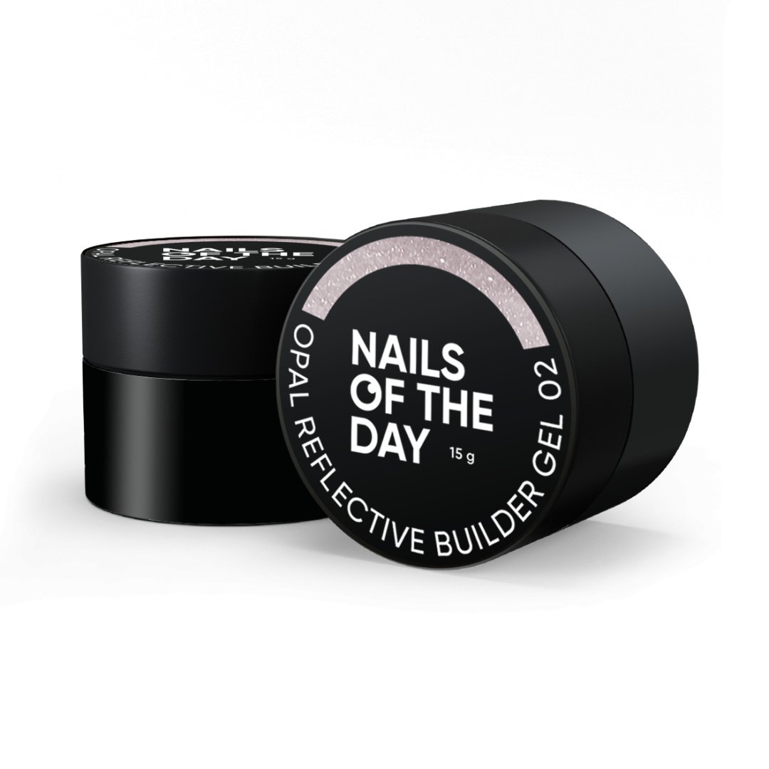 NAILSOFTHEDAY Opal reflective Builder gel 02 to profesjonalny różowo-mleczny żel budujący, wzbogacony luksusowym opalizującym połyskiem oraz subtelnymi drobinkami odblaskowymi. Jego średnia konsystencja i właściwości samopoziomujące ułatwiają modelowanie i gwarantują perfekcyjny efekt bez nadmiernego piłowania. Idealny zarówno do wzmacniania naturalnej płytki, jak i przedłużania paznokci na szablonach lub górnych formach. Zapewnia wyjątkową trwałość, elegancję i komfort pracy.