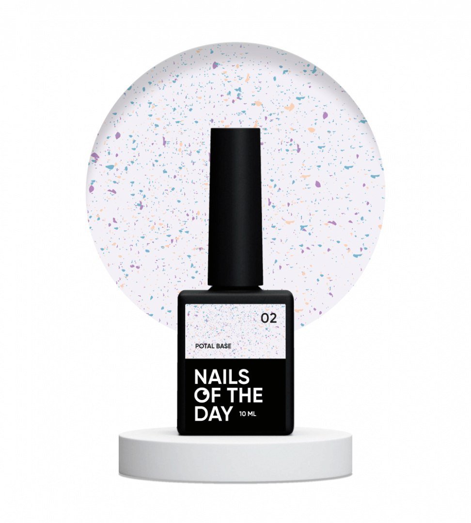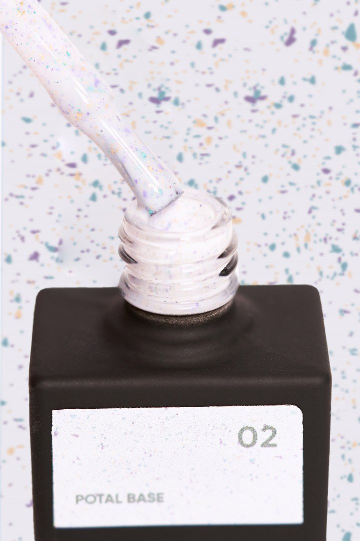 NAILSOFTHEDAY Potal Base 02 to ekskluzywna mleczno-błękitna baza hybrydowa wzbogacona o złoto-fioletowe i turkusowe płatki, które subtelnie migoczą w świetle. Jej średnia konsystencja i wysoka plastyczność pozwalają łatwo wyrównać powierzchnię paznokcia, tworząc perfekcyjną architekturę. Dzięki nowoczesnej formule baza jest odporna na uszkodzenia mechaniczne, nie kurczy się i utrzymuje swój efekt przez wiele tygodni. Nie zawiera toksycznych składników ani nieprzyjemnego zapachu. Idealna do tworzenia eleganckich, artystycznych stylizacji hybrydowych.