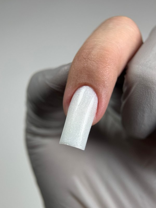 Biało-srebrny żel budujący z drobinkami o płynnej konsystencji. Samopoziomujący, bardzo wytrzymały – idealny do przedłużania i wzmacniania paznokci.